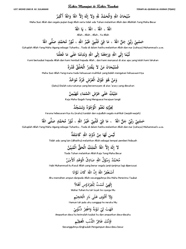 Amalan doa/zikir ini boleh diamalkan sebagai zikir harian selepas solat . Bacaan zikir dan doa taubat nasuha rumi dan jawi wirid dan doa. You have just read the article entitled zikir munajat rumi. Berikut adalah zikir taubat nasuha yang mudah dan ringkas untuk dijadikan amalan harian.